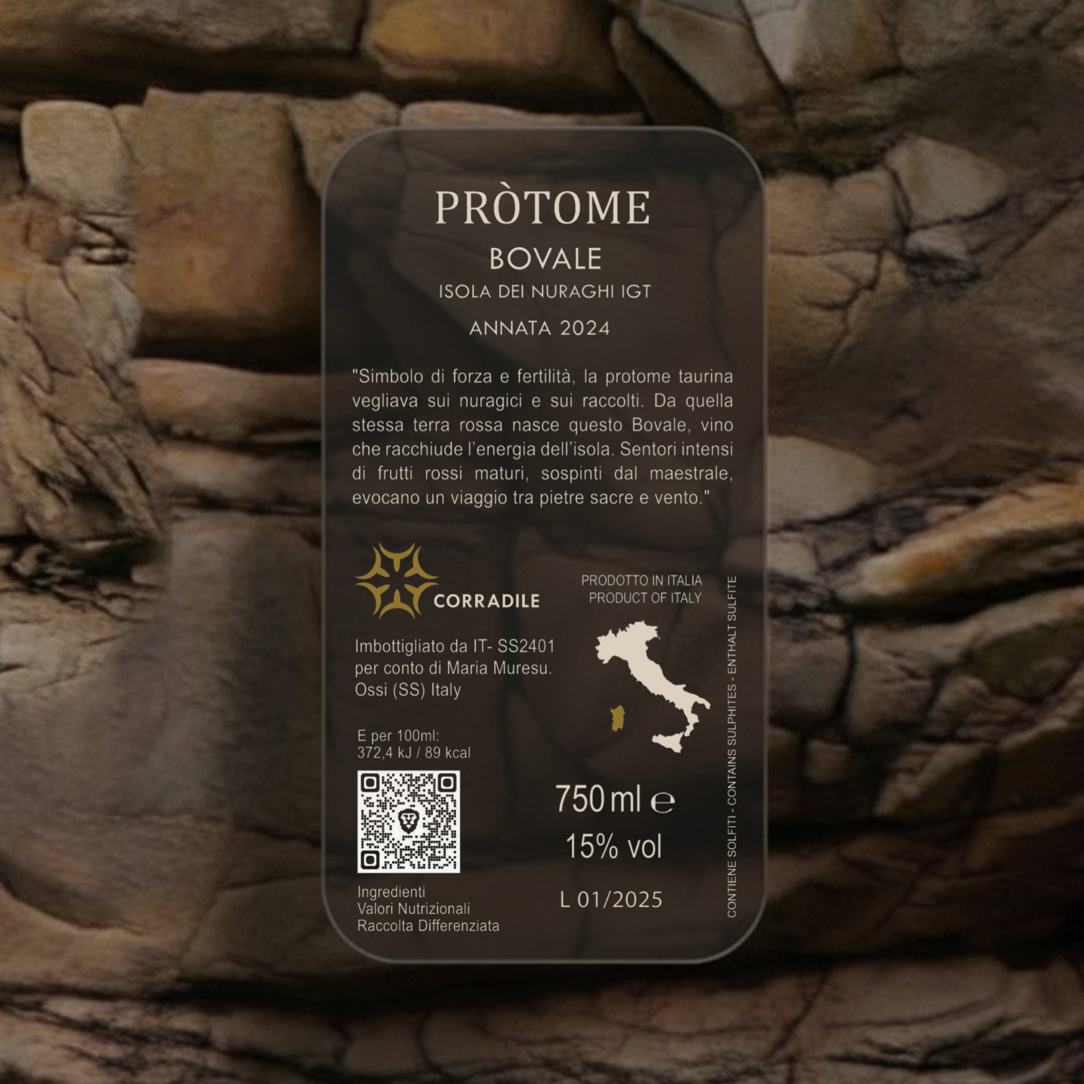 Sentori intensi di frutti rossi maturi, sospinti dal maestrale, evocano un viaggio tra pietre sacre e vento.